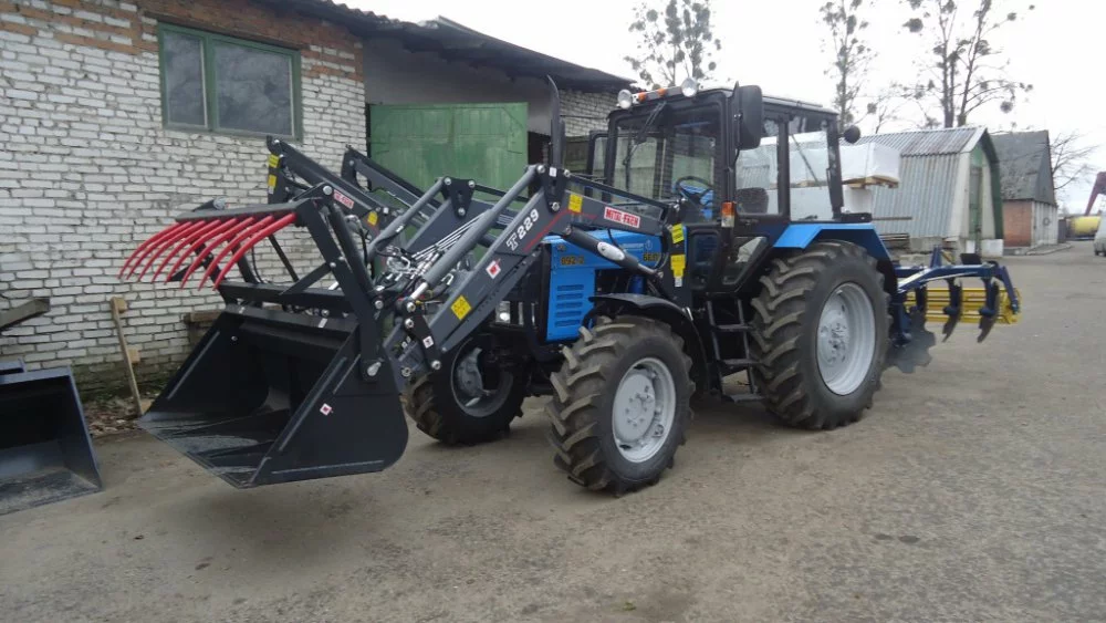 Фронтальный погрузчик T 229 Хорошее положение центра тяжести во фронтальном погрузчике T 229 влияет на уменьшение амортизации трактора. Оптимальные углы загрузки и свалки обеспечивают чёткость работы. Погрузчик обладает рамой, стабилизирующей работу. Быструю и удобную смену оснащения обеспечивает современная рама EURO/SMS. Грузоподъемность 1300/1600. Лёгкое и быстрое подключение гидравлических проводов. Погрузчик агрегируется к трактору с помощью шкворня. Амортизатор смягчает удары , что влияет на комфортное потребление. Управление погрузчика происходит с помощью джойстика/3-секционного распределителя. Доступны цветные варианты в зависимости от марки трактора.