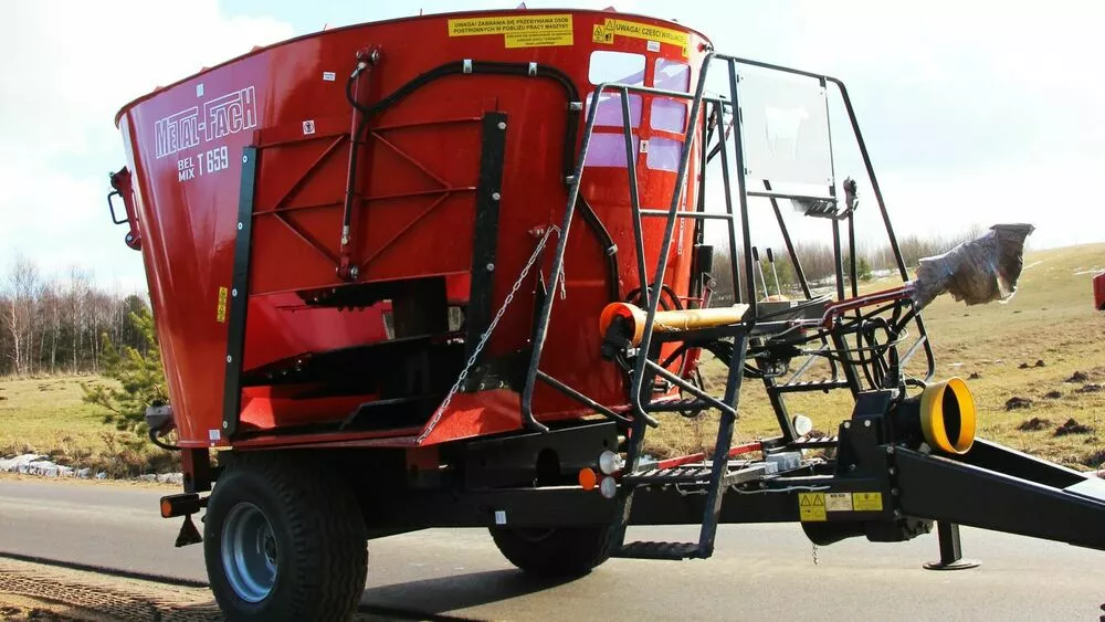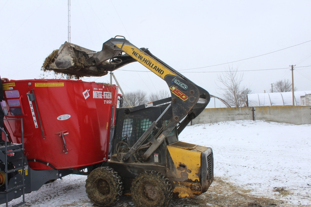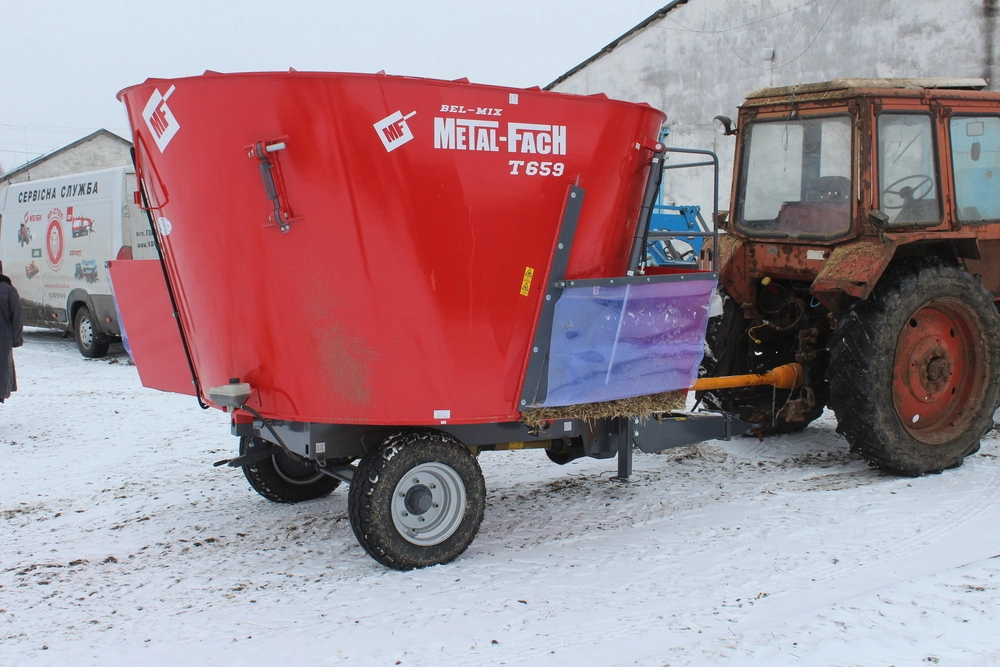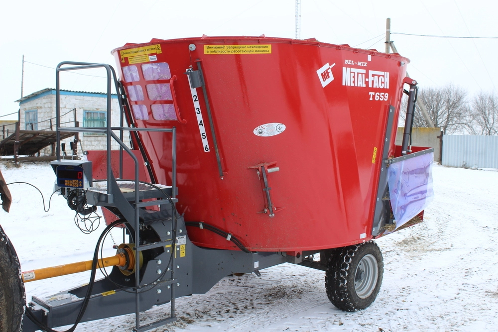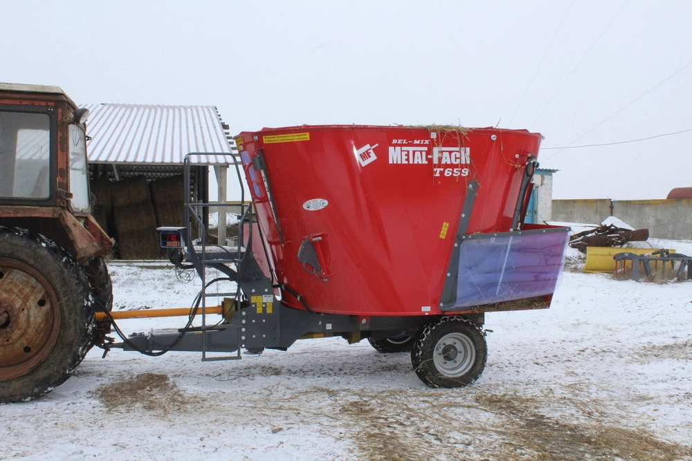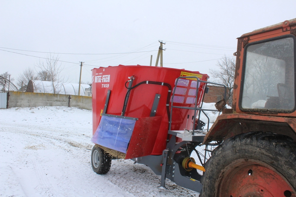 сторонам кормораздатчика. Вертикальный шнек-смеситель, оснащенный,